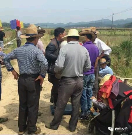 在等待收割的同時(shí),活動的主辦方浙江省臺州農(nóng)資與樂平中天農(nóng)業(yè)的工作人員開始登記觀眾所報(bào)的產(chǎn)量競猜數(shù)據(jù),因前幾日為了催枯打了立收谷,水份含量比一般收割田塊要低,大家是看了又看,想了又想,猜330斤到400斤的都有,看樣子群眾的心中還是有桿秤,此田300斤往上走是鐵定的了!